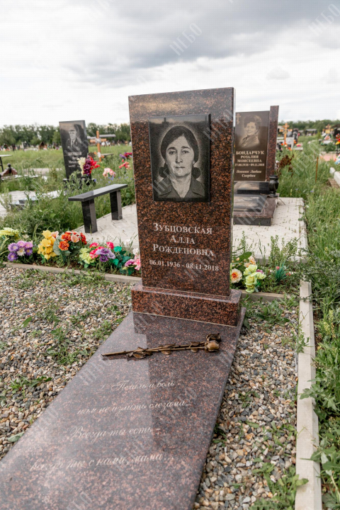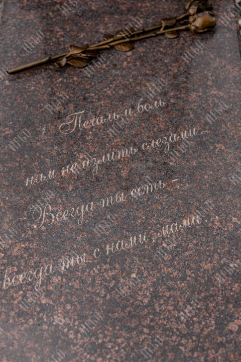 Фото на ритуальном изделии изготовлено методом гравировки алмазными иглами на черном граните. Далее фотография вставлена в памятник из выбранного материала, создавая эффект контрастности. Такой способ вставки изображения применяется в случае изготовления памятника из материалов светлых, серых, коричневых и других оттенков, гарантируя фотографии четкость и наилучшее качество, а готовому изделию долговечность. Благодаря использованию технологии гравировки на граните, фото не потускнеет со временем, не исказится и сохранит первозданный вид десятки лет.