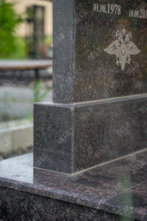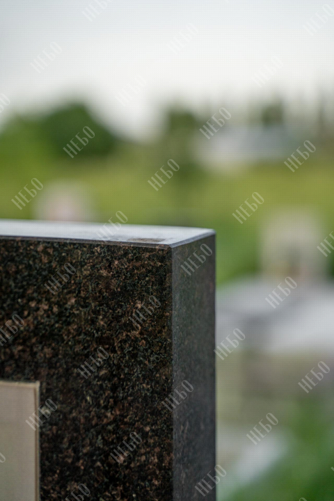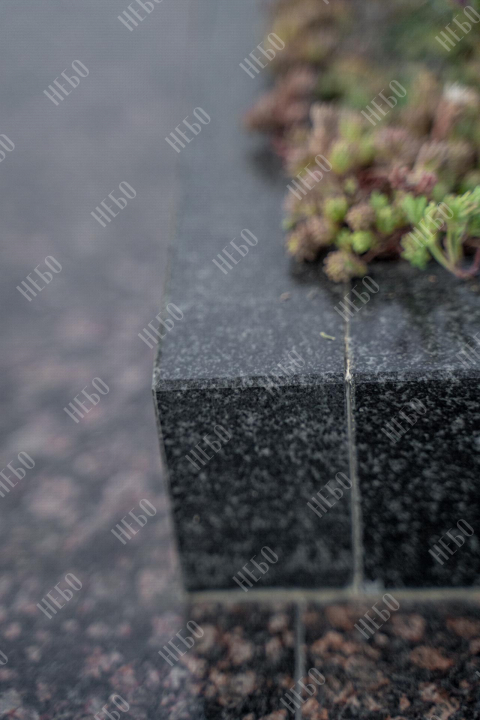 Прямой памятник с гранитной вазой и открытым надгробием выполнен в строгом лаконичном стиле с использованием четких геометрических линий. Темные оттенки и прямоугольные формы стелы и надгробия являются классической комбинацией, которая часто используется при изготовлении памятников. Открытое гранитное надгробие позволяет высадить на поверхности цветы и другие растения. При изготовлении памятника специалисты тщательно прорабатывают соотношение форм, размеров и нагрузку, чтобы исключить деформации и искажения изделия со временем.